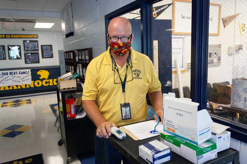 As school nurse, Courtney Atkins is RCPS’s chief COVID-19 watchdog. If a student arrives with a temperature higher than 100 degrees, or other symptoms — such as a new cough, shortness of breath or loss of taste and smell — he or she will be sent to an isolation room where Atkins will do a more comprehensive assessment, including determining if the student has had any exposure to someone with the virus.