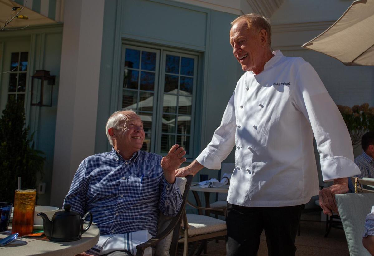 In October, Town of Washington Attorney John Bennett enjoys a moment with Inn at Little Washington Proprietor Patrick O’Connell at a preview lunch at Patty O’s Cafe, the chef’s latest venture. (Photo/Luke Christopher)