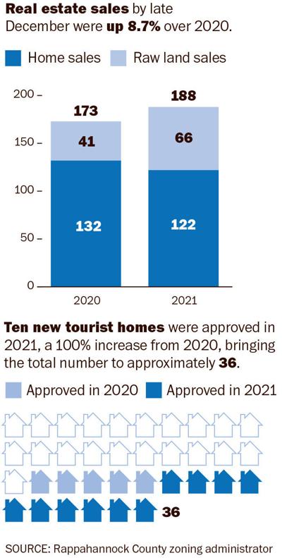 Ten new tourist homes were approved in 2021, a 100% increase from 2020, bringing the total number to approximately 36. Real estate sales continued their brisk pace with 122 home and 66 land sales by mid-December 2021. Along with increased real estate prices came a rise in property tax reassessments which averaged 15.3%.