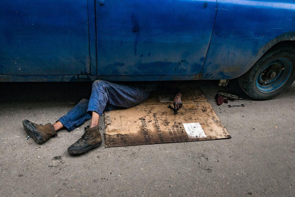 The Mechanic: A photograph by guest artist Branden Eastwood showing a mechanic working on a car in Havana. (Photo/Branden Eastwood)