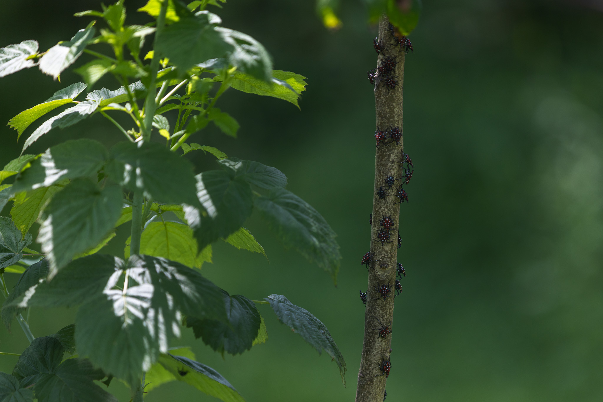 Dozens of nymphs lining a branch of a tree of heaven at Muskrat Haven Farm in Amissville. (Photo/Ireland Hayes)