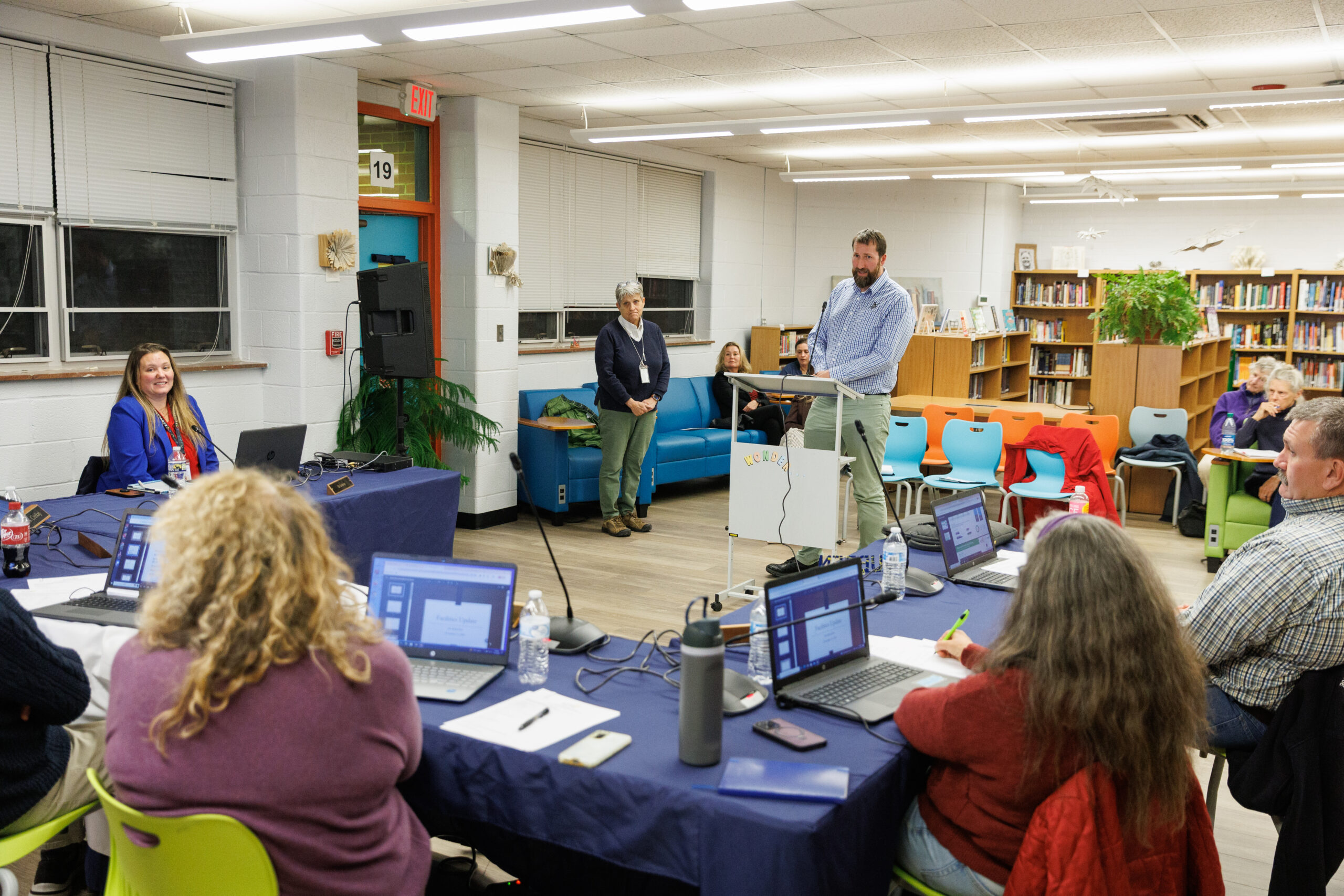 Jeff Henry, director of member services and community relations for Rappahannock Electric Cooperative (REC) attended the meeting to explain the cause of the recent outages, which he said stemmed from failures in a voltage-protection device and automatic shut off that should have shut off power during the surge. Henry said crews would inspect the line from the substation to the school Wednesday and provide a report to prevent future issues.