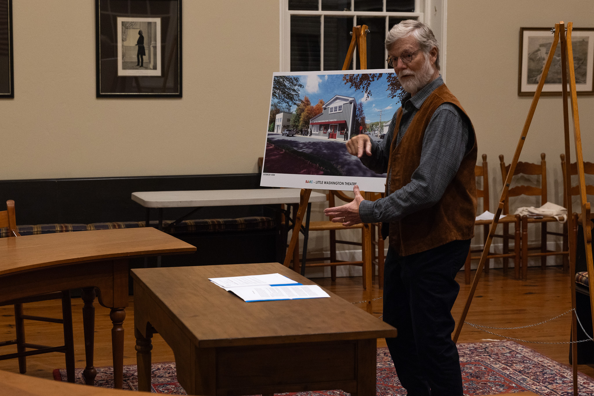 Representatives from the Rappahannock Association for Arts and Community (RAAC) presented preliminary designs for its renovation of the Little Washington Theatre to the town’s Architectural Review Board (ARB) Monday night.