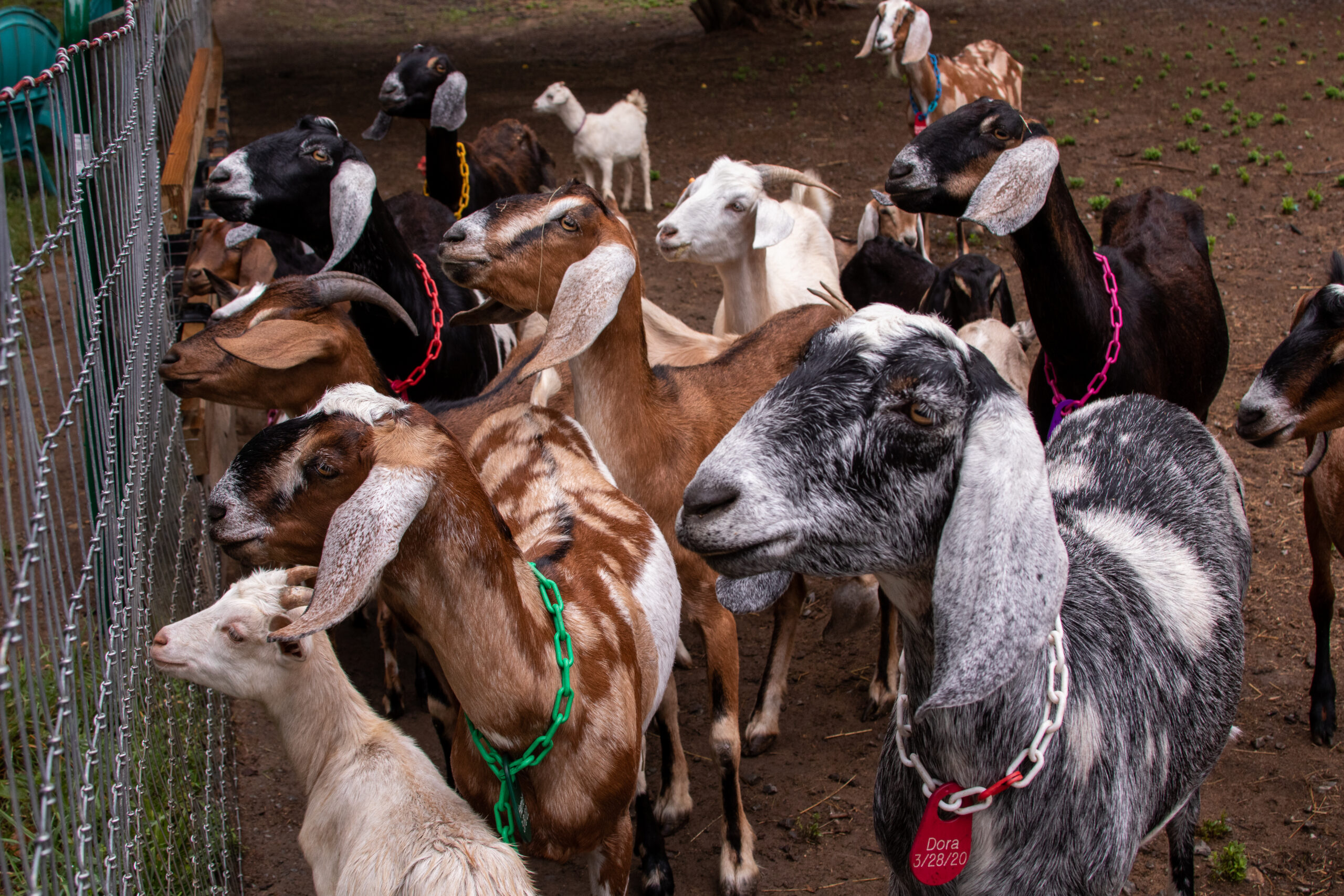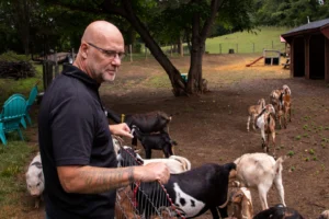 Many of the animals at Charming Hill Farm are raised by hand and known by name to visitors to the farm’s “goat cuddling” service. The farm is also home to a working herd of goats used for land-clearing services.