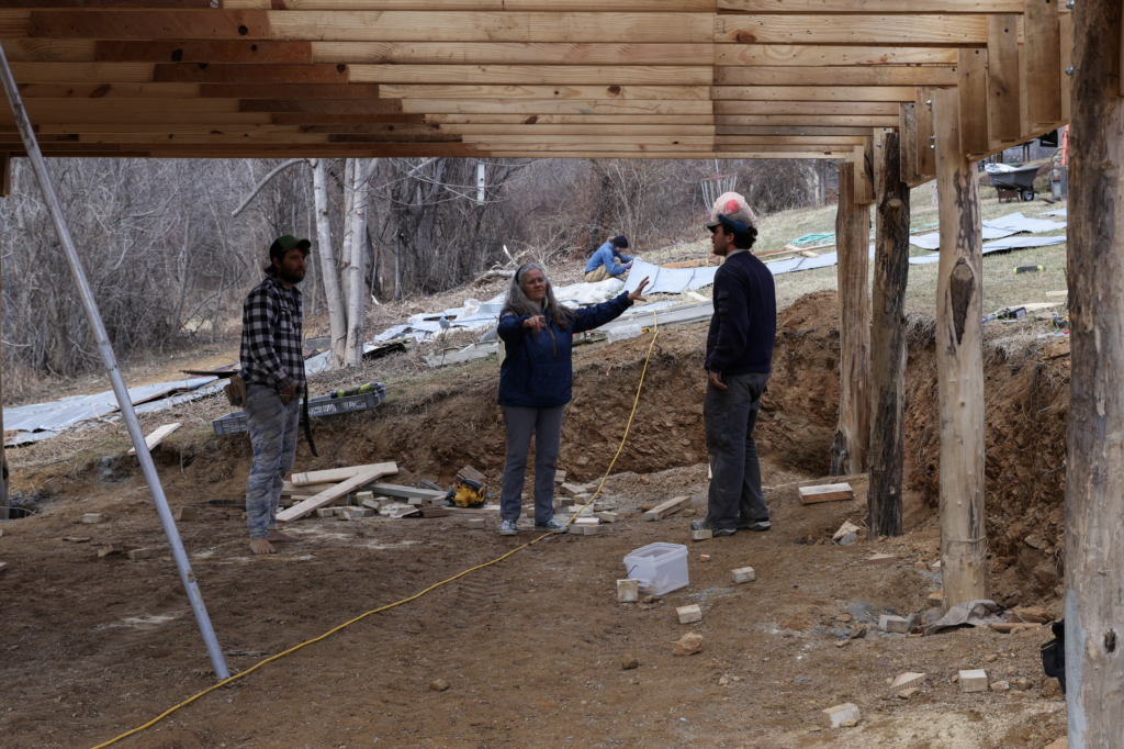 - Waterpenny farmer and Nature Camp Director Rachel Bynum directs Stephen Rose and Paul Huddleston at the construction site. Bynum said construction should be completed by the end of the month.