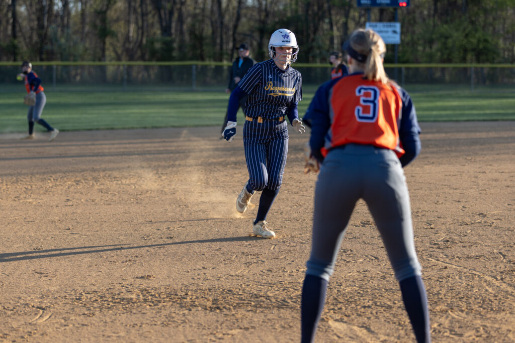 - Freshman Anna Payne runs toward third base after her teammate’s hit.