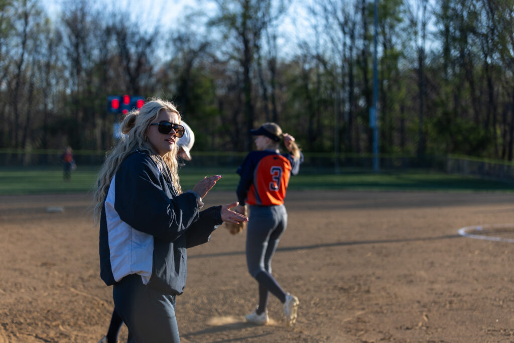 - Head Coach Allie Phillips cheers for her team after a successful play.