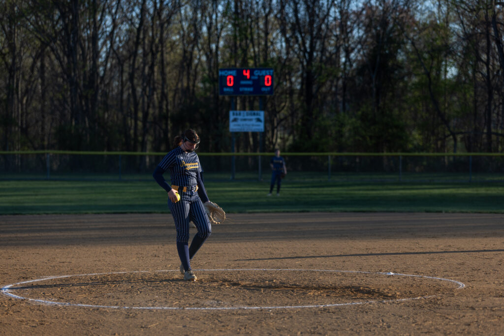 - Pitcher Addison Gray prepares to pitch to a Clarke County player.