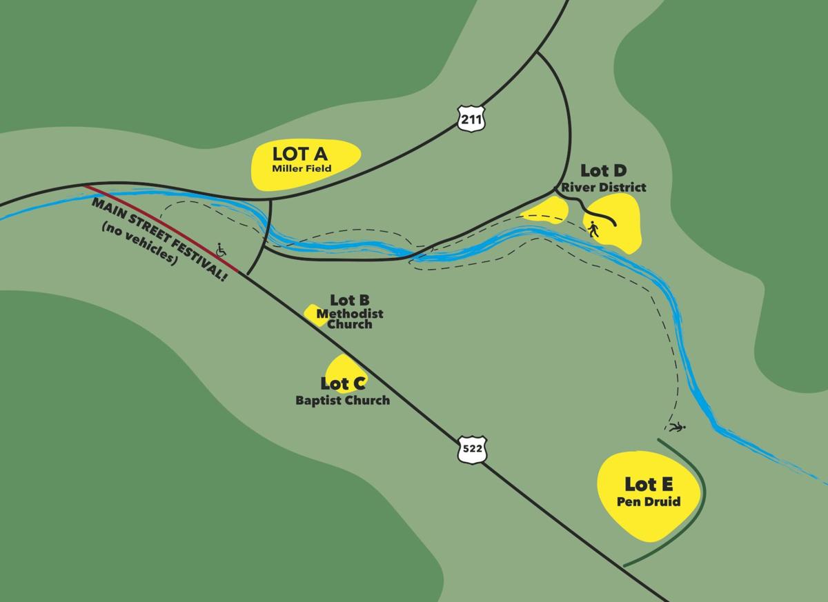 → Park in Lot D and walk our trail to Main Street (1.3 mi.)