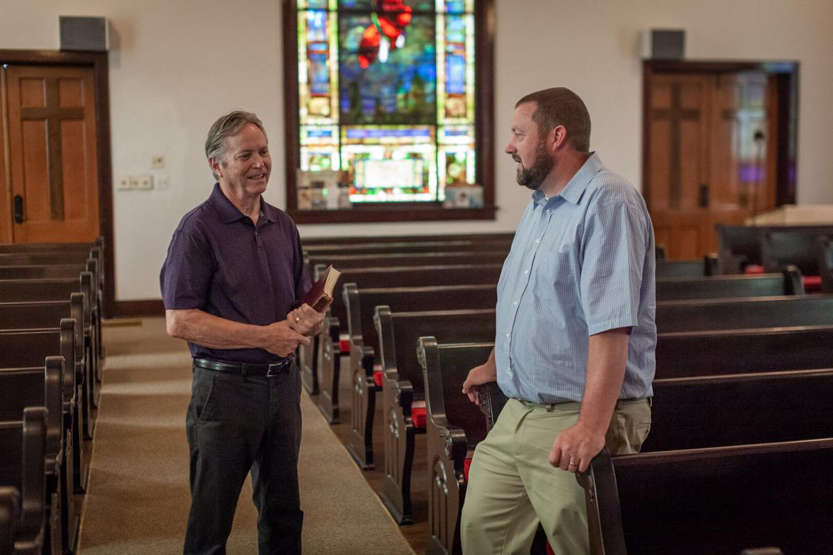 Jon Heddleston with interim Pastor, Randy Clark, 44, former head of Youth Services at Reynolds Memorial Baptist Church. (Photo/Luke Christopher)