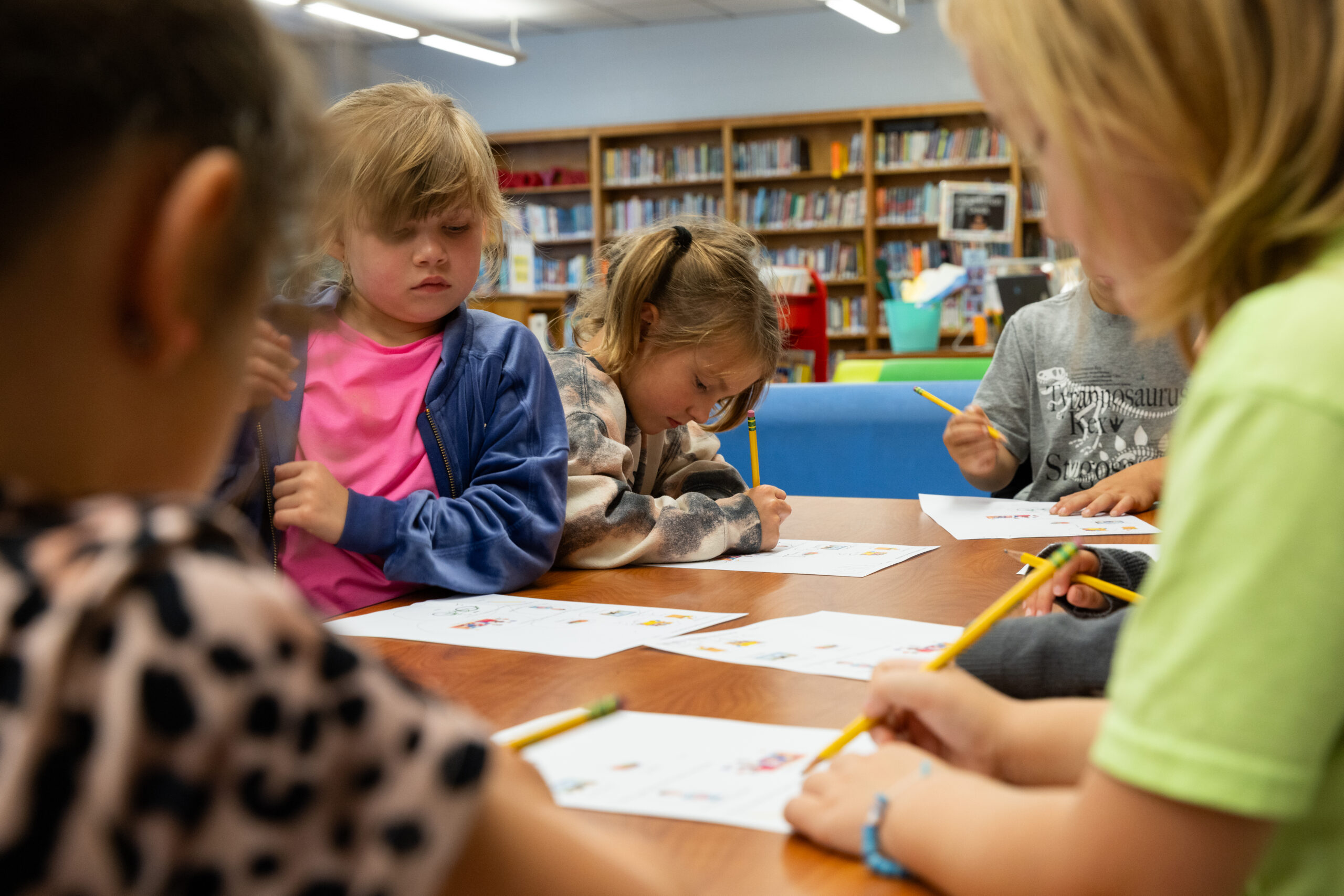 A group of kindergarten students work on a pretest in their first-ever MyFuture class at Rappahannock County Elementary School. (Photo/Ireland Hayes)