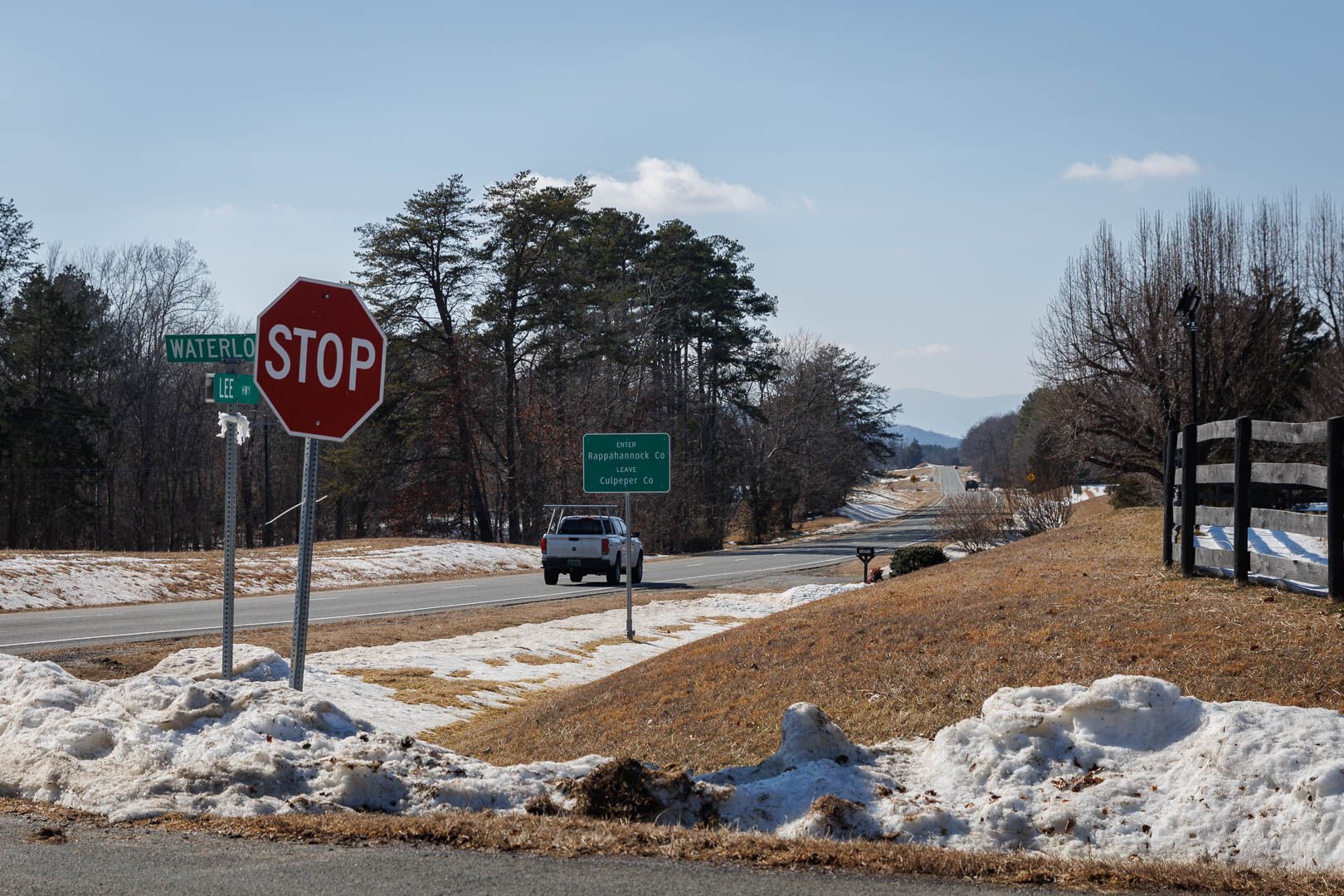 The intersection of Route 211 and Waterloo Road as you enter Rappahannock County driving west. (Photo/Luke Christopher)