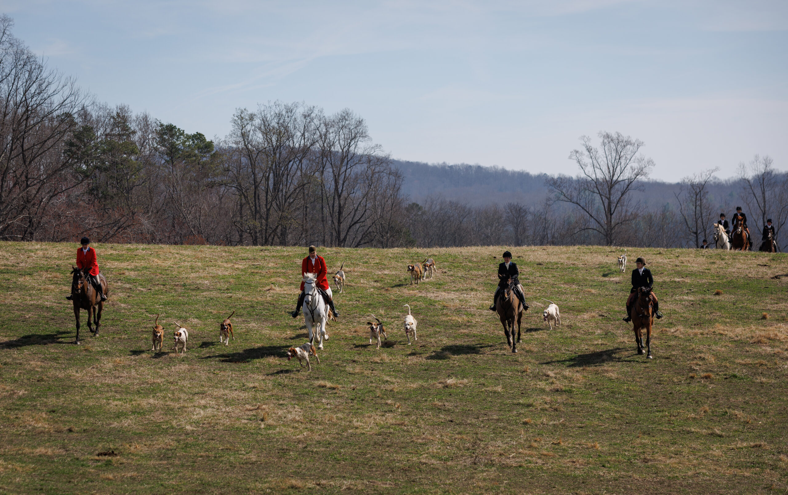 A thin veil of mist hangs over the rolling fields of Virginia’s Piedmont as riders gather, their horses shifting beneath them in the cold March air. Breath rises in soft clouds. Leather creaks. Hounds stir with anticipation.