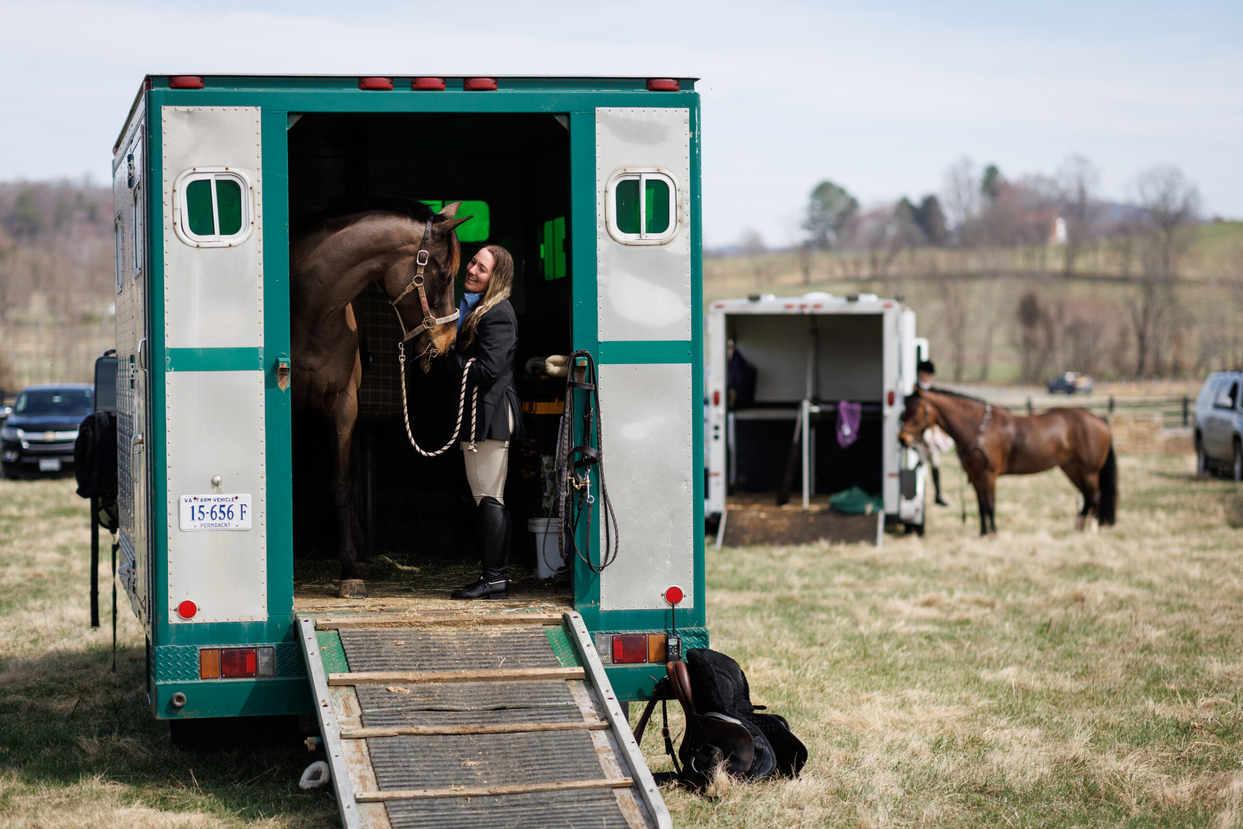 Kristy D’Alessandro with “Ducati VT” a Hanoverian from Virginia Tech’s breeding program, after the hunt at Meadow Grove farm. (Photo/Luke Christopher)