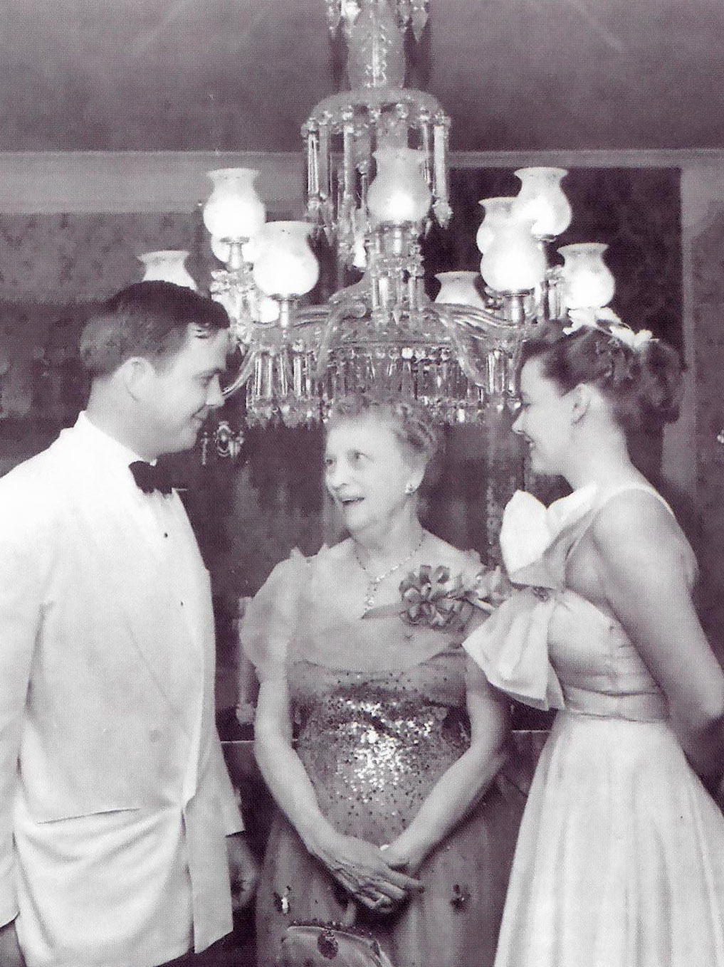 - Jim Bill Fletcher, Mary Jamieson and an unidentified fellow attendee at a Rappahannock Hunt ball yesteryear.
